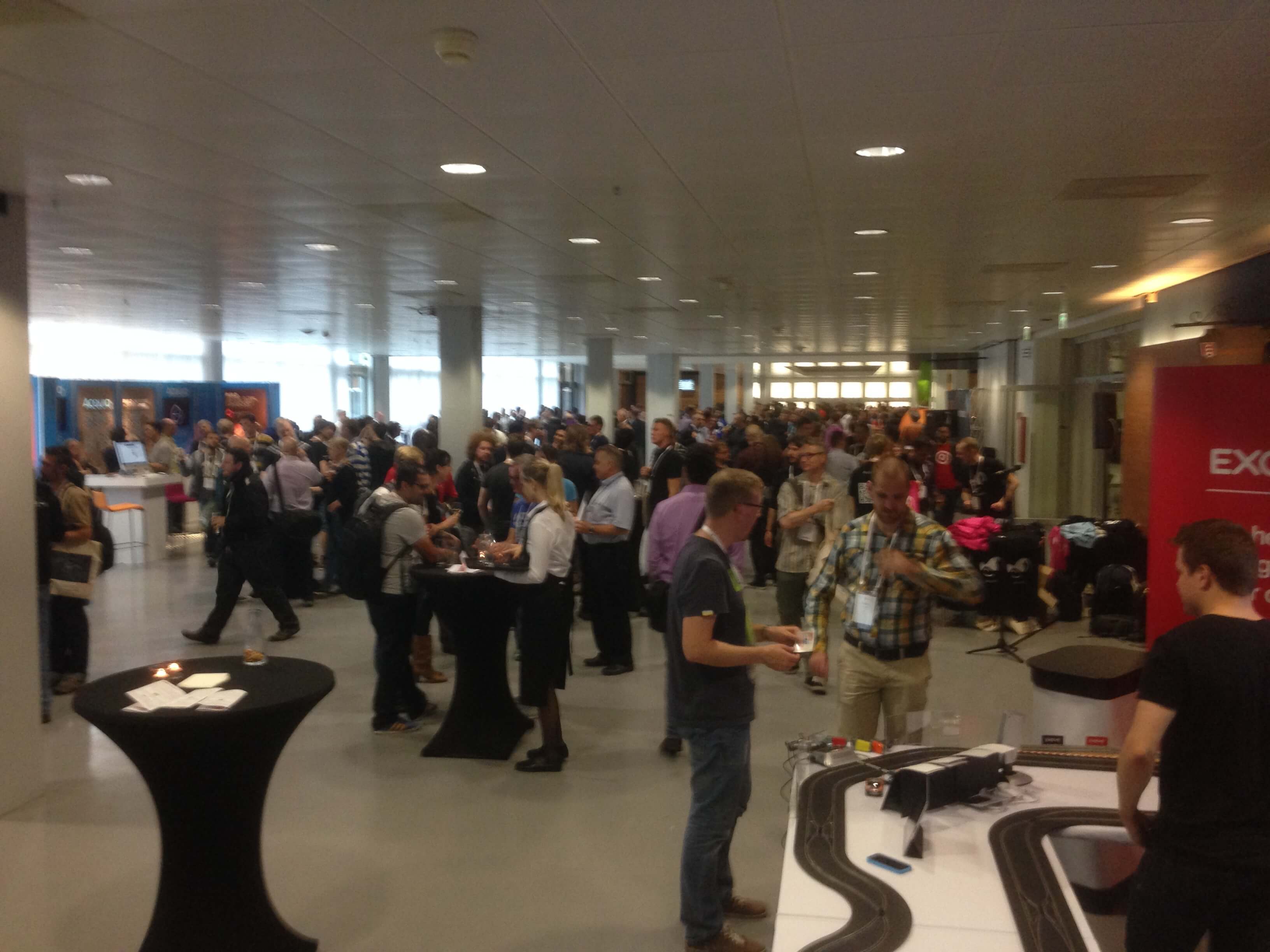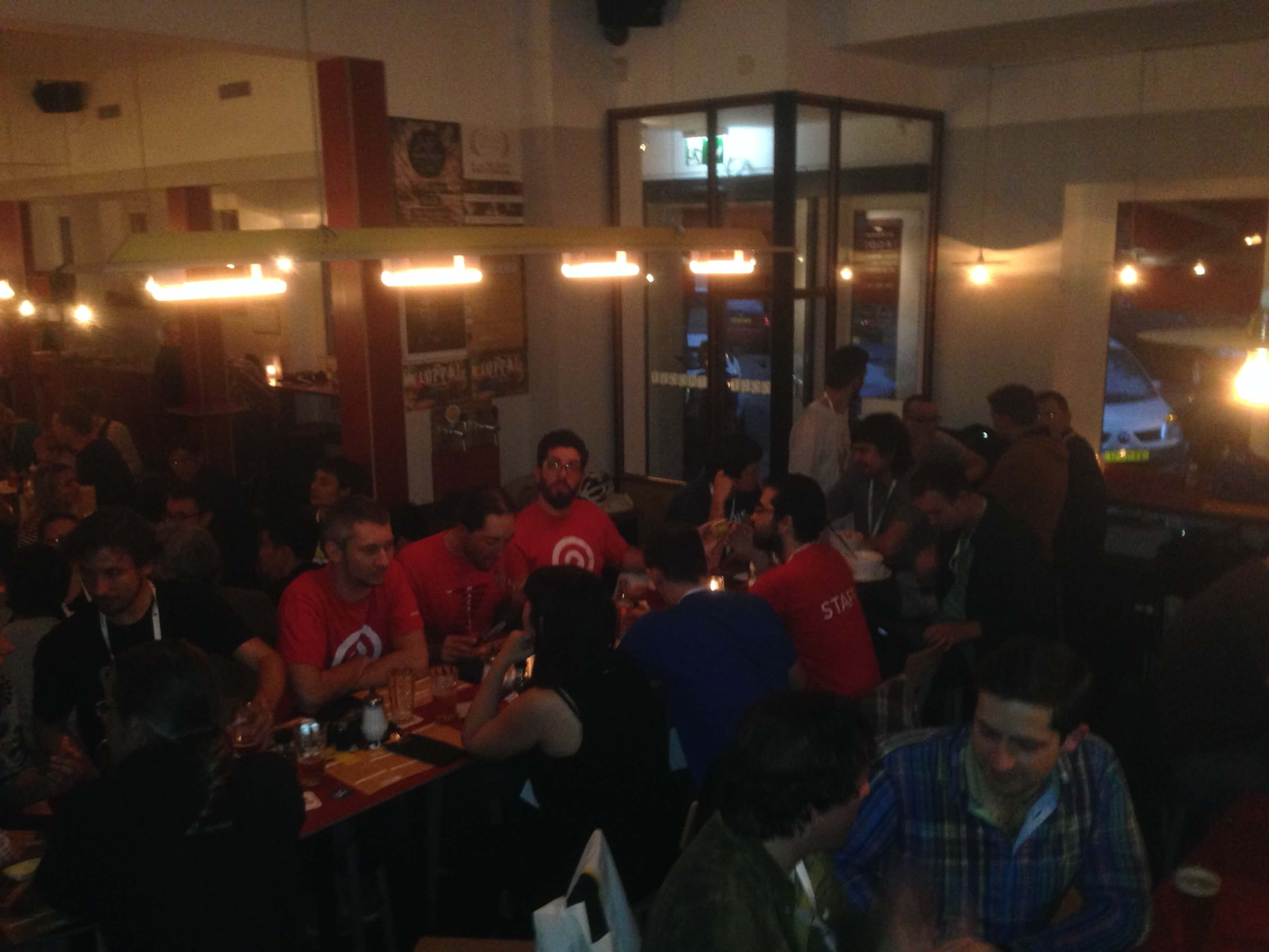 The Community summit ended at 3 o'clock, which was a bit disappointing, but work was piling up, so perhaps it was for the best. I also got to spend an hour downstairs in the Europe Foyer, where the sponsors had arrived and set up their booths. Got me some cool swag (stickers, stress ball in the shape of a rocket, T-shirts) and had really nice and interesting talks with a lot of people. After that, I went to Brouwerij Troost where the Community Summit dinner was held. They served the best burger I've had in... well heck of a long time. And the beer was awesome. Talked to a gentlemen about something called CMS-garden, which is a really cool project where open source CMS's are being presented at different conferences such as CeBit. We actually discussed such a thing earlier today during the summit, and behold - here it is. Amazing (to paraphrase an anonymous Apple employee).