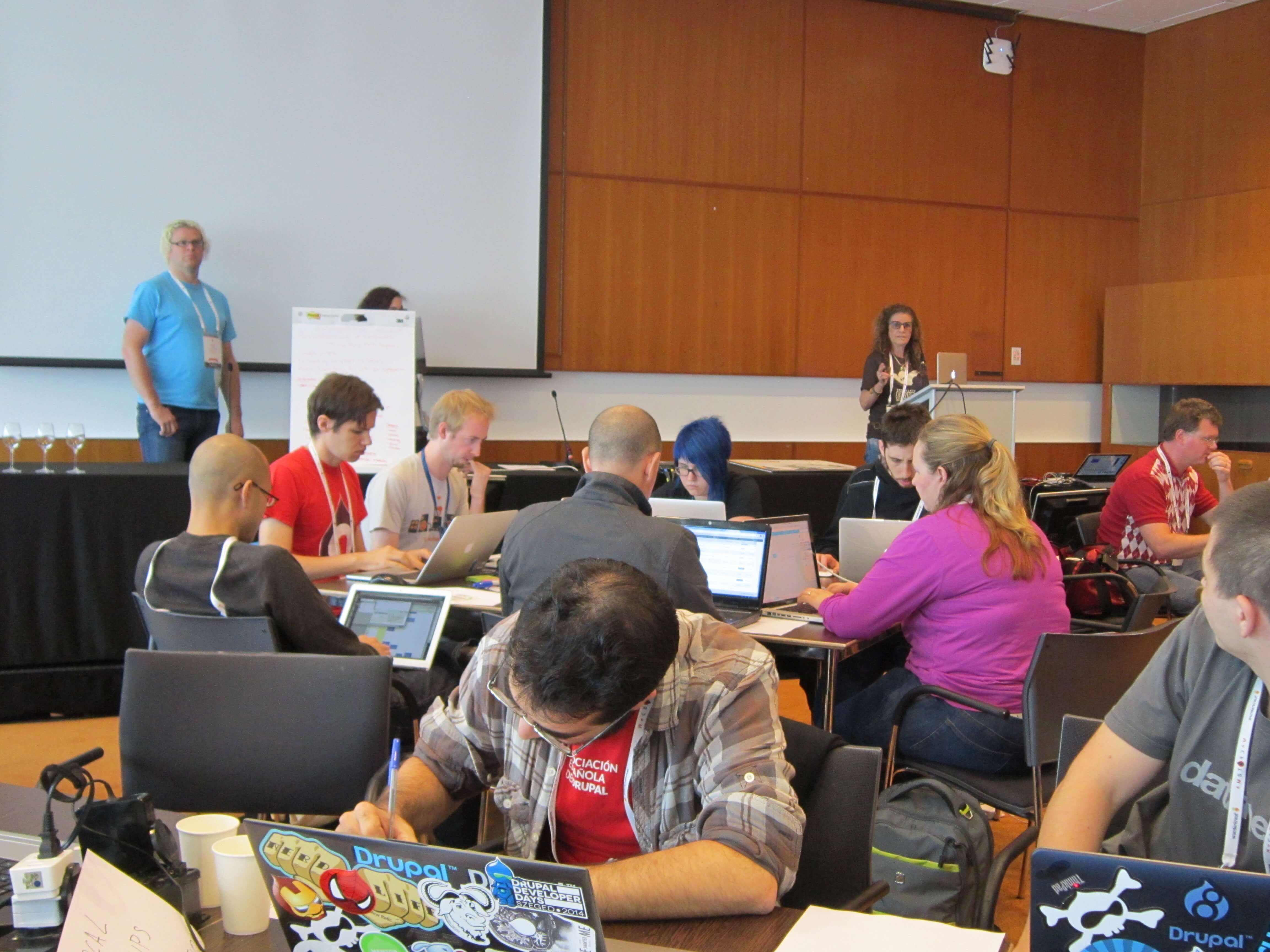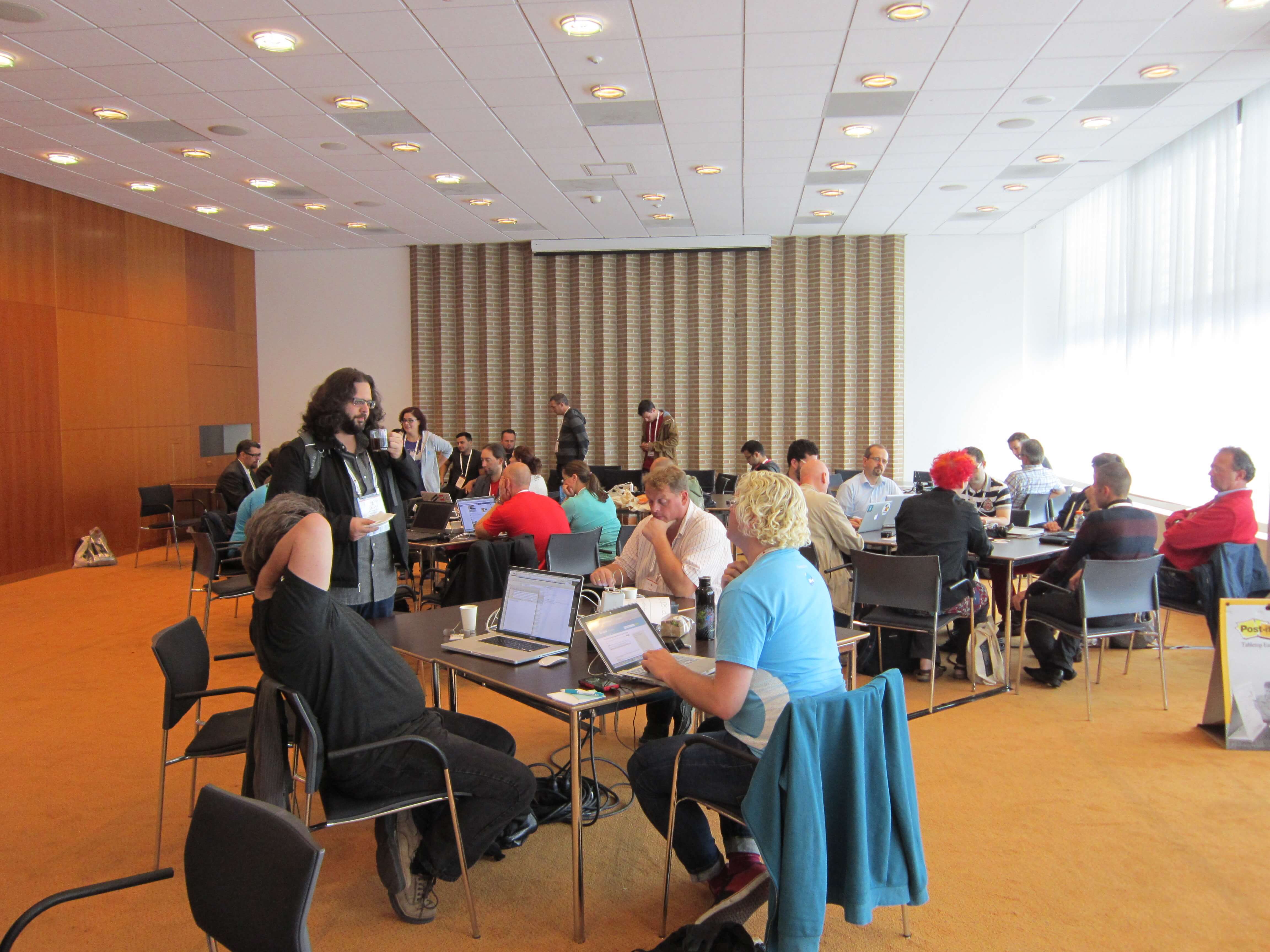 Even if I went to bed early, my B&B's location close to the fire department made my night eventful (two fires apparantly) and my morning at bit slo-o-o-ow. I did have the time to get my registration done at the venue, get a cup of coffee and join the other Drupalistas in G104 for my first community summit.